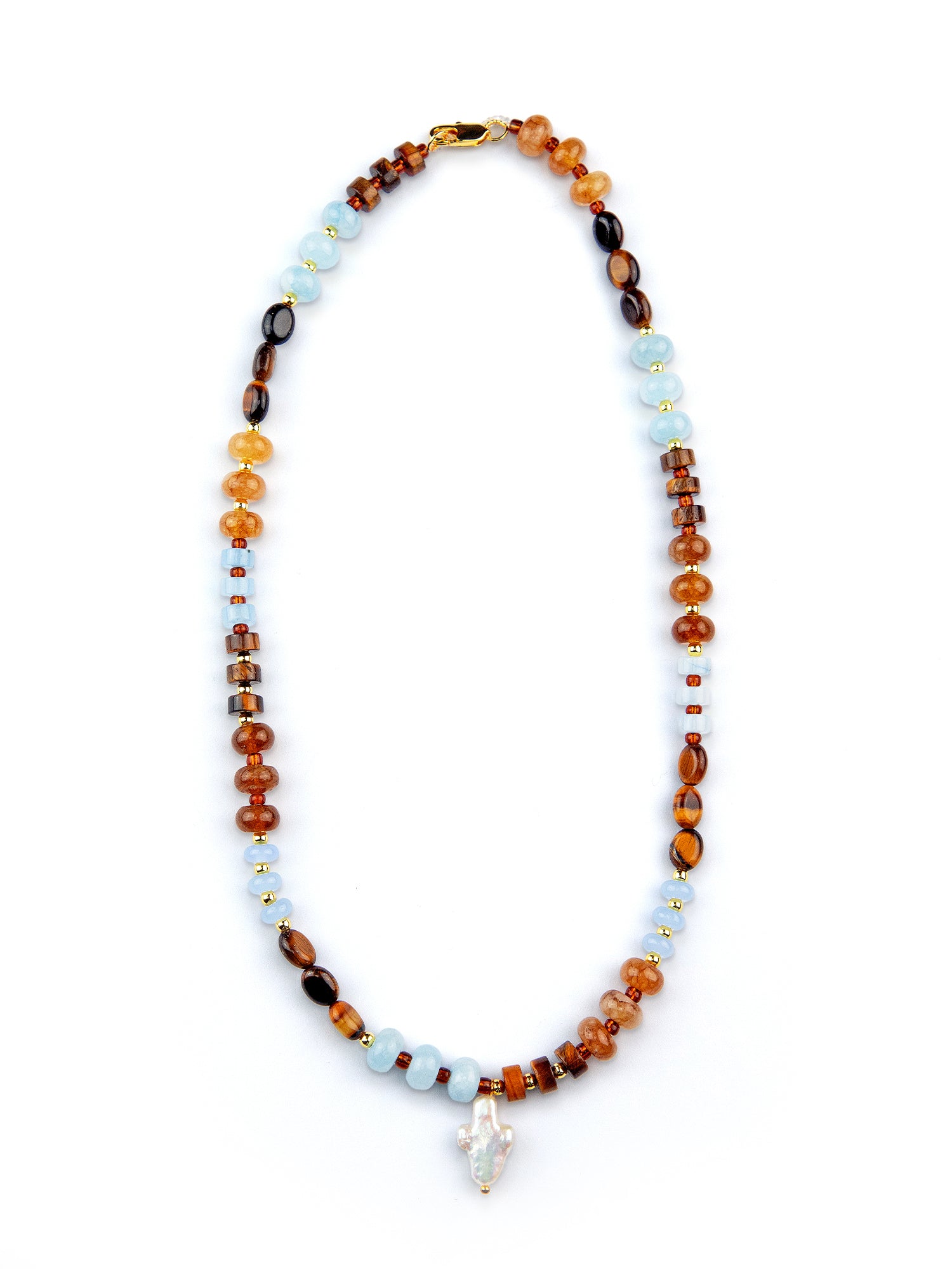 A myriad of colour to express yourself with. This short necklace features a mix of reconstructed imperial jasper stones – known for their tranquillity – and are contrasted with small gold 18K (3mm) beads for a beautiful finish. Handmade in my studio especially for you!