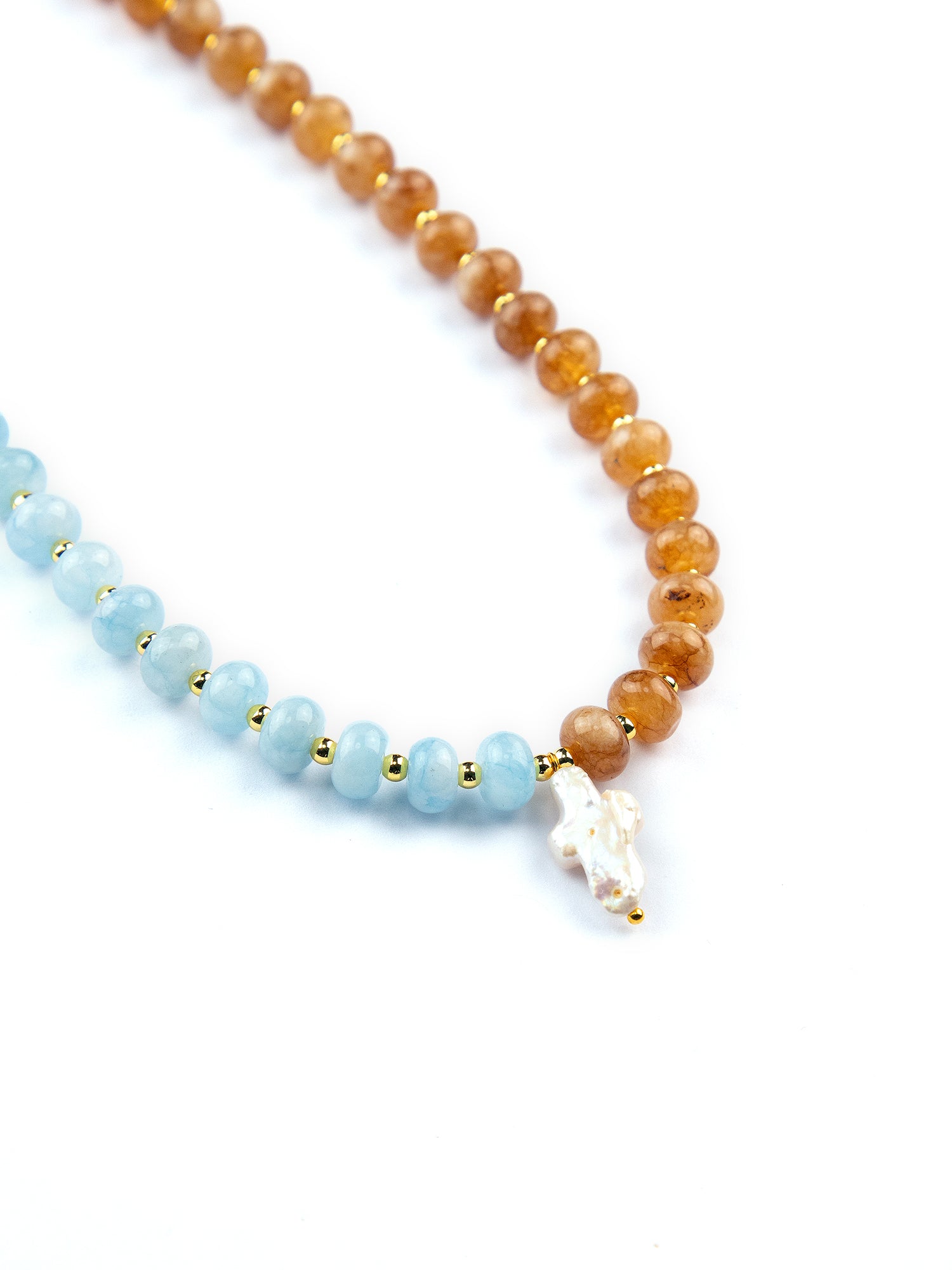 A myriad of colour to express yourself with. This short necklace features a mix of reconstructed imperial jasper stones – known for their tranquillity – and are contrasted with small gold 18K (3mm) beads for a beautiful finish. Handmade in my studio especially for you!
